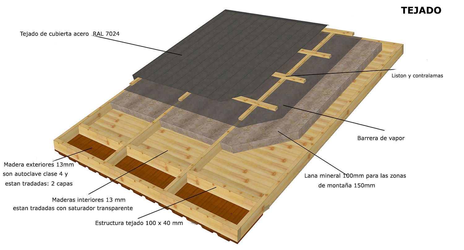 FEROE motel aislamiento general: Muro perimetral 50 mm, zona montaña 100mm, tejado 100 mm, zona montaña 150mm, suelo 100 mm zona montaña 150mm, Todas las maderas exteriores son autoclave clase 4 marrón, Todas las maderas interiores están tratadas con saturador transparente, puertas y ventana de madera laminada con doble acristalamiento, El suelo está revestido de linóleo imitación parqué.